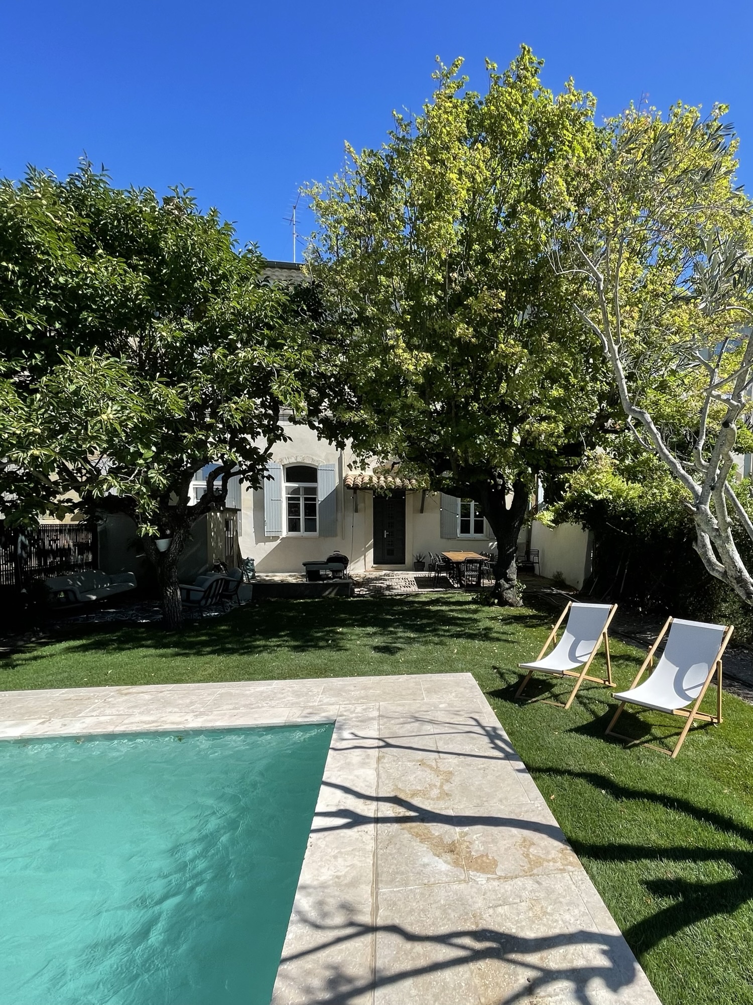 Maison spacieuse récemment rénovée. Terrasse avec coin salon et, de l'autre côté, une grande table permettant de prendre ses repas à l'extérieur. Petit jardin avec terrain de pétanque et belle piscine.